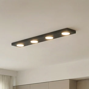 Plafoniera Hero, nera, a 4 luci, 75 x 12 cm, metallo, GX53