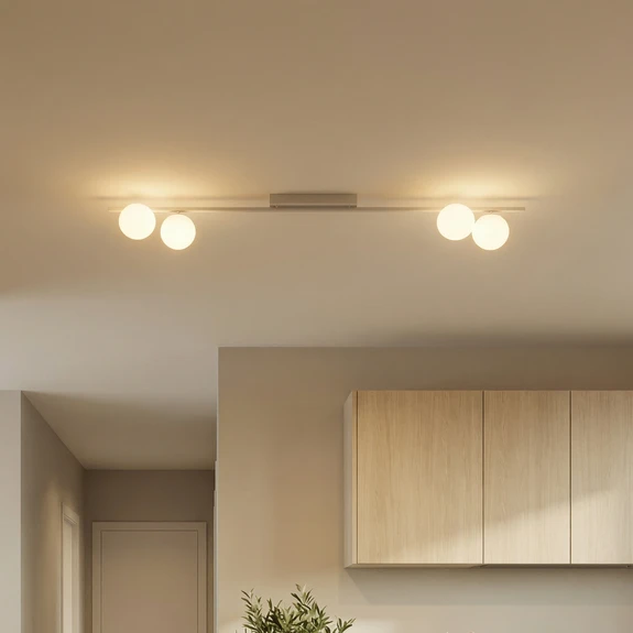 Plafoniera Imelo, color crema, a 4 luci, vetro, lunghezza 140 cm