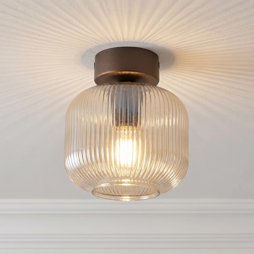 Plafoniera Salvia, marrone/cognac, vetro, Ø 15 cm, E14